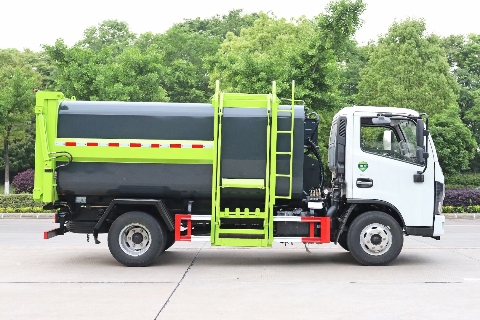 舉升機構(gòu):采用知名品牌液壓油缸質(zhì)量可靠,操作穩(wěn)定,實現(xiàn)垃圾箱自卸功能,解放工人雙手,提高工作效率。