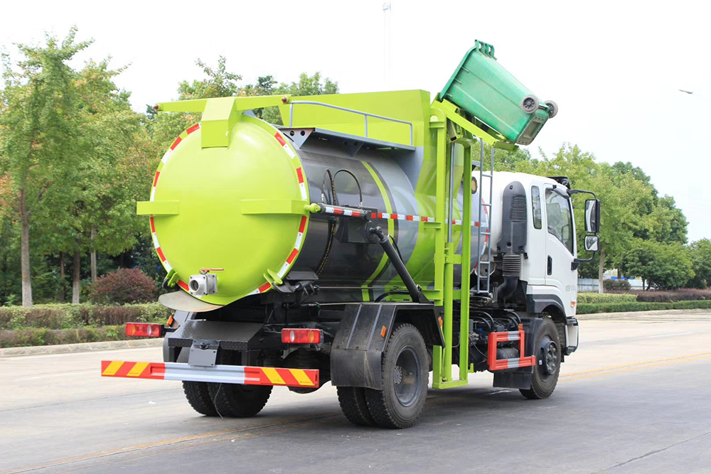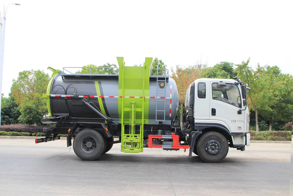 罐體采用優(yōu)質(zhì)碳鋼板材,罐體內(nèi)部帶固液分離功能(全推推板,不銹鋼泔水分離網(wǎng)板),罐內(nèi)加熱功能(用于嚴(yán)寒地帶防止罐內(nèi)餐飲垃圾凍結(jié)凝固,采用柴油燃燒機(jī)加熱,加熱速度快效果好,可設(shè)置高低溫實(shí)現(xiàn)自動(dòng)溫控)全液壓操作系統(tǒng),工作人員操作方便,罐體舉升自卸,拉桿式掛桶提升機(jī),可以掛120/240升垃圾桶進(jìn)行作業(yè),后蓋液壓驅(qū)動(dòng)開(kāi)啟、鎖緊,方便人員操作。